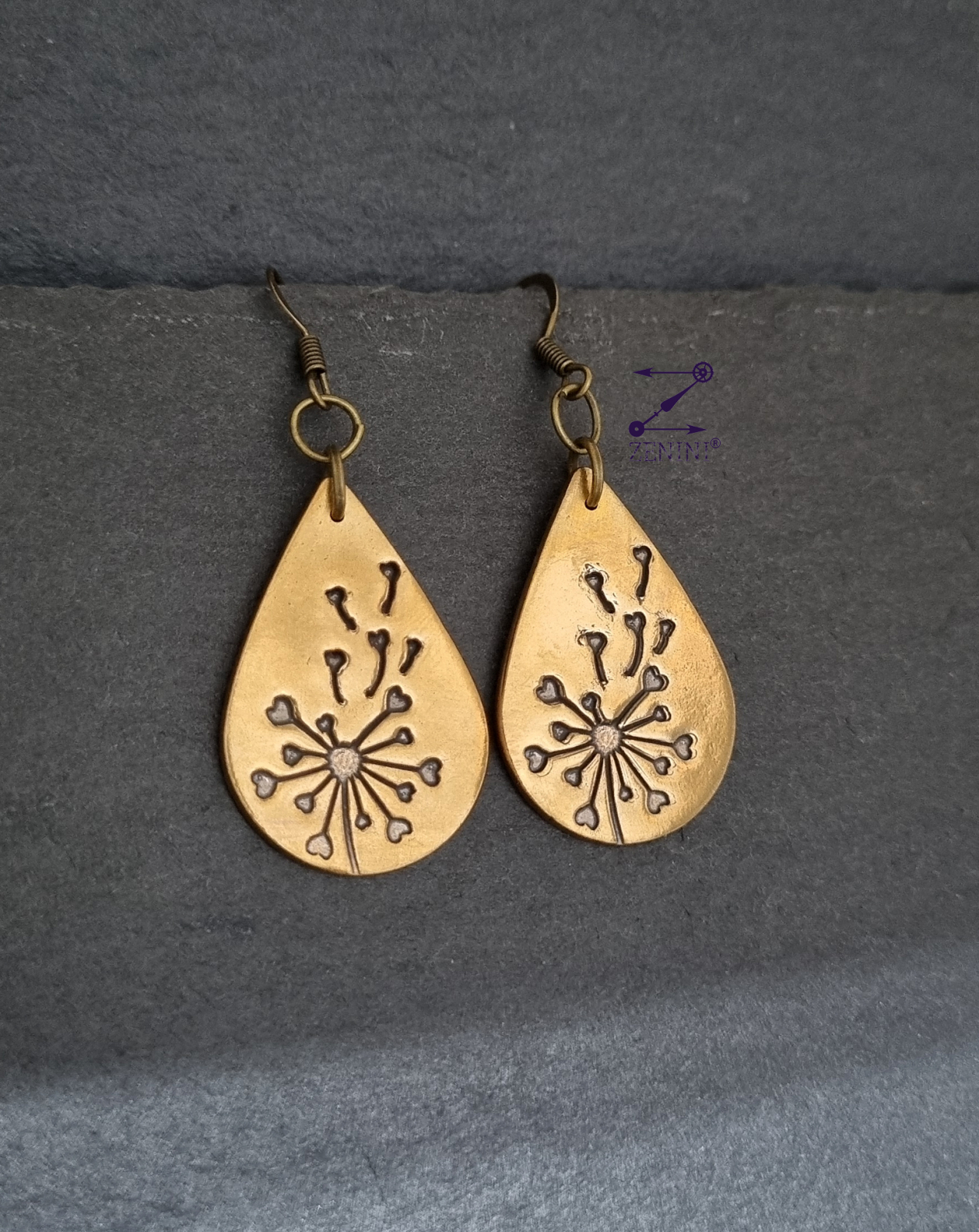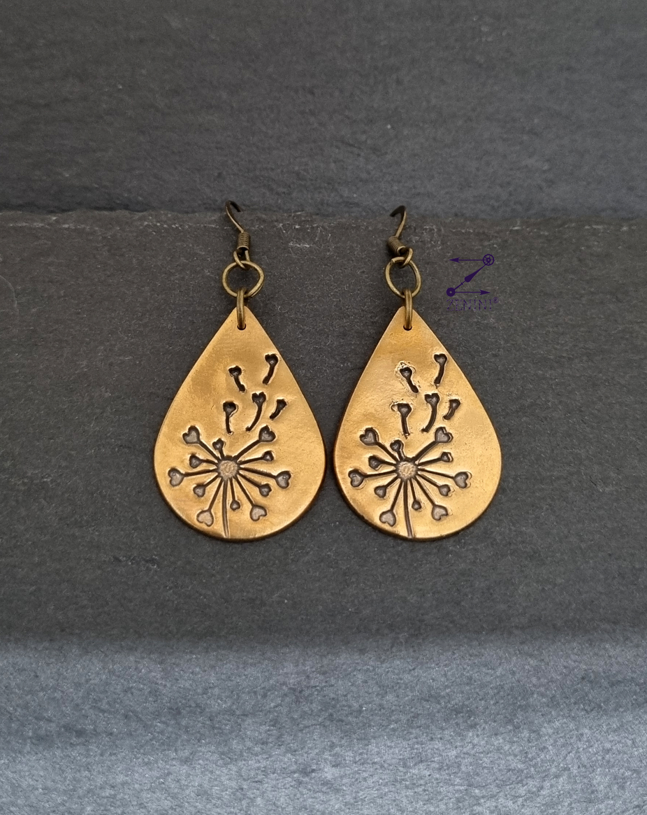 Cercei din bronz in forma de lacrima, cu model cu papadie.