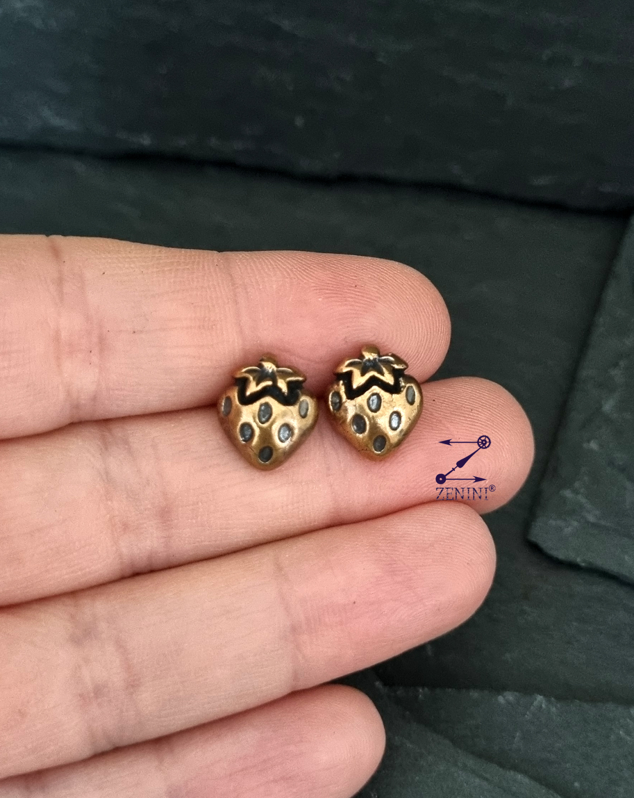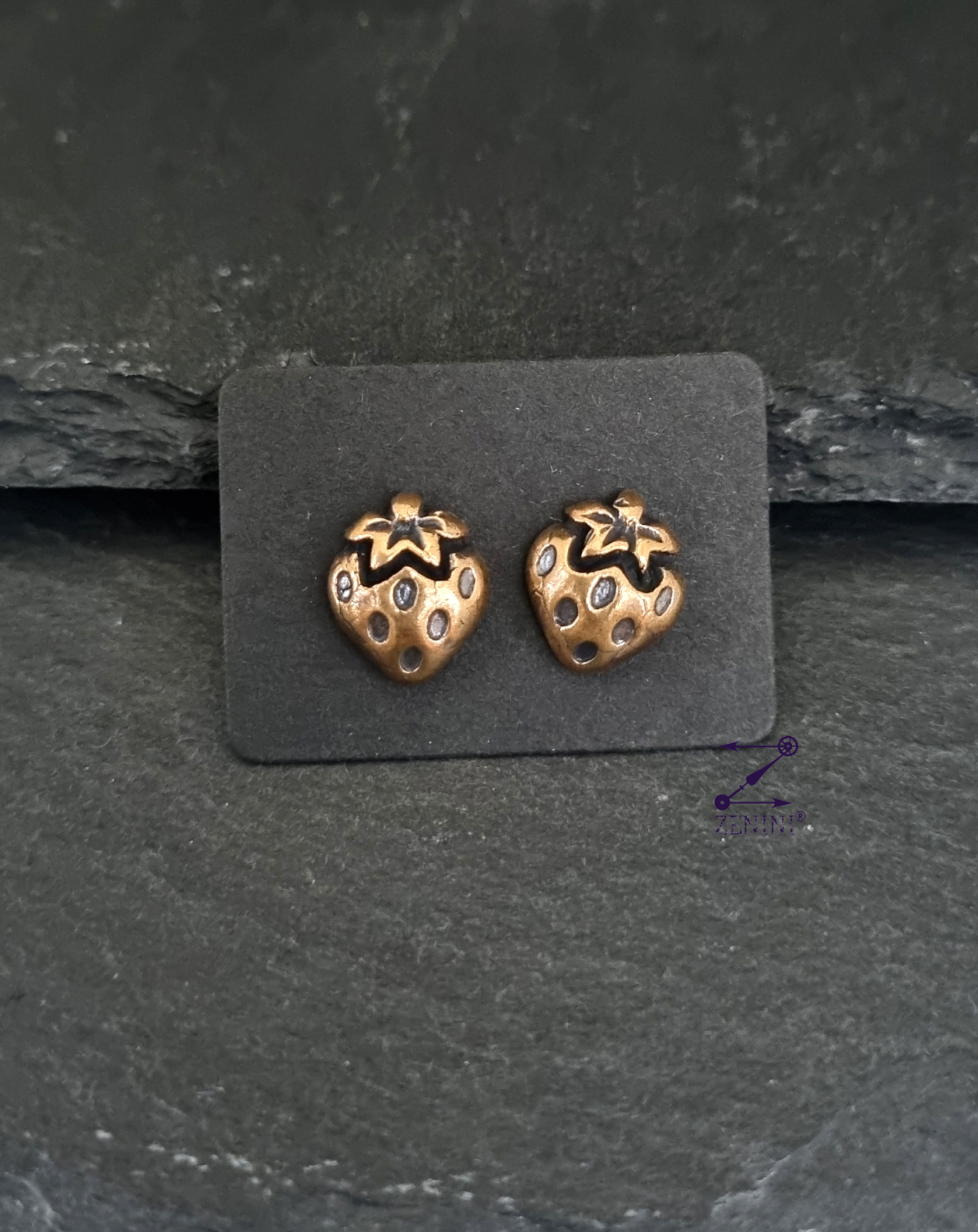 Cercei din bronz in forma de capsuni, realizati manual si antichizati.