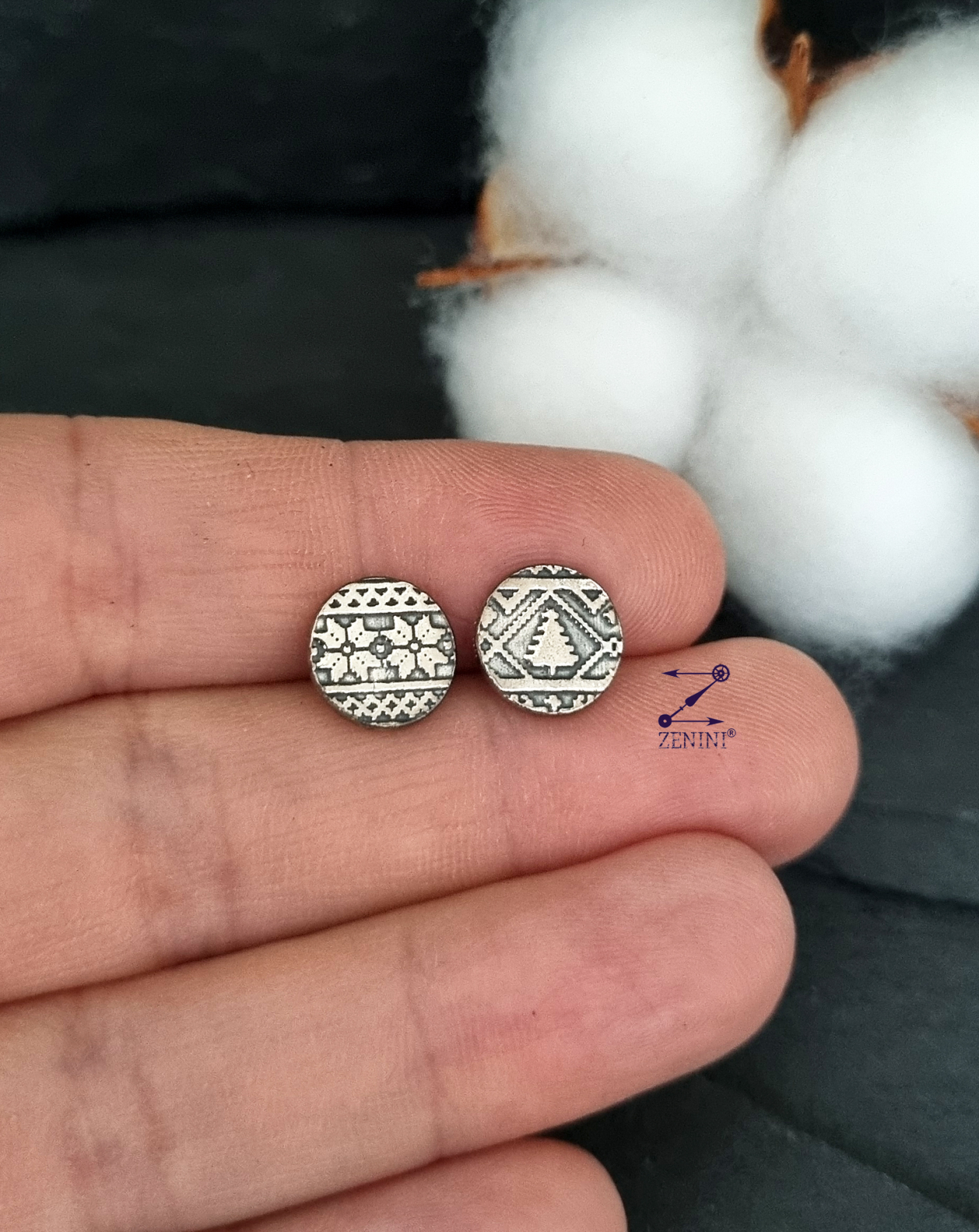 Cercei din argint cu model de Craciun, realizati manual si antichizati. Fiecare cercel are un alt model: bradut si floarea Craciunului.