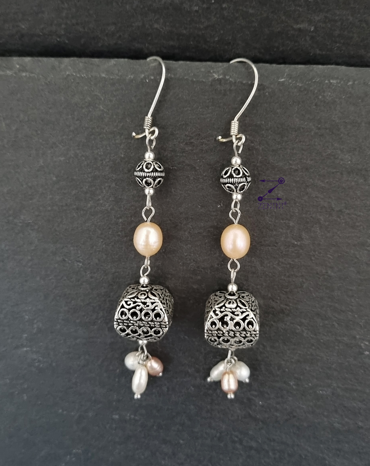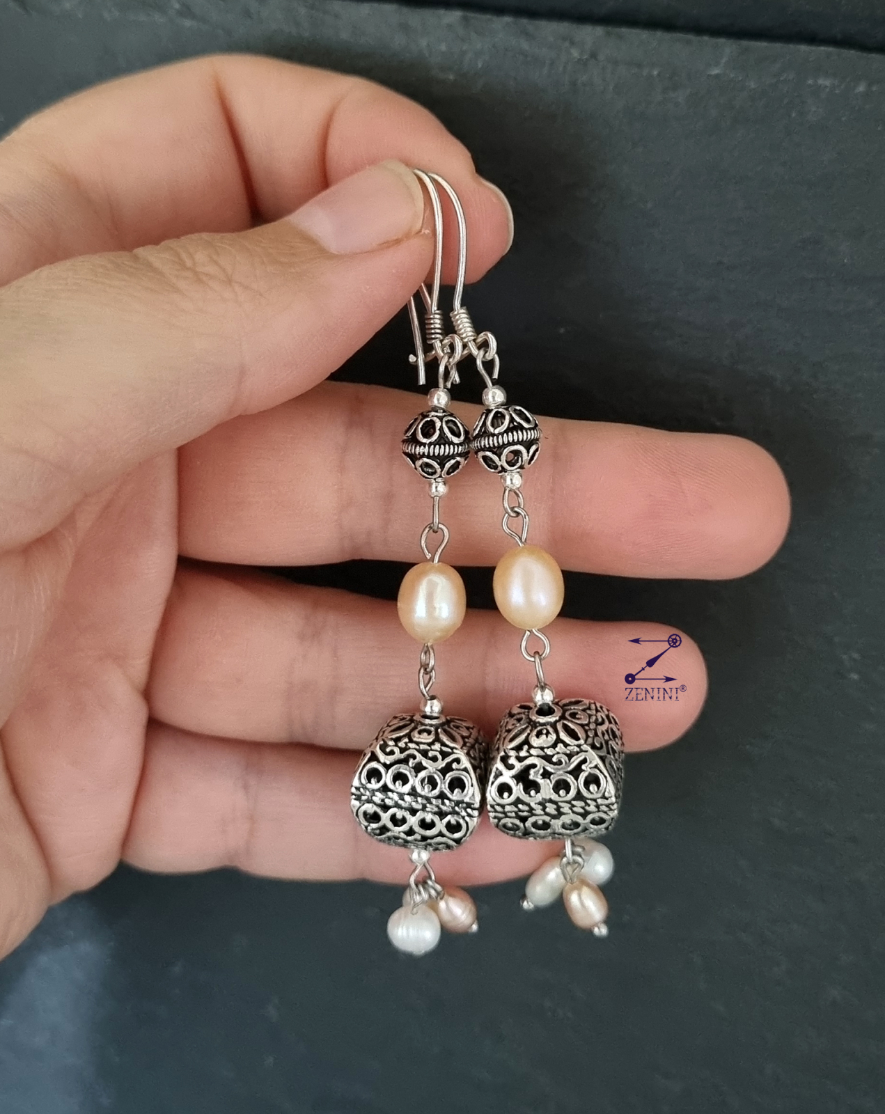 Cercei lungi din argint cu model oriental si perle de cultura - unicat